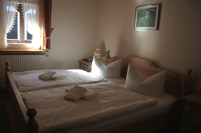 Im Landhausstil mit Echtholzmöbeln und stilvollen Bildern. 2 Schlafzimmer mit Doppelbett und Uhren-Weckradio.